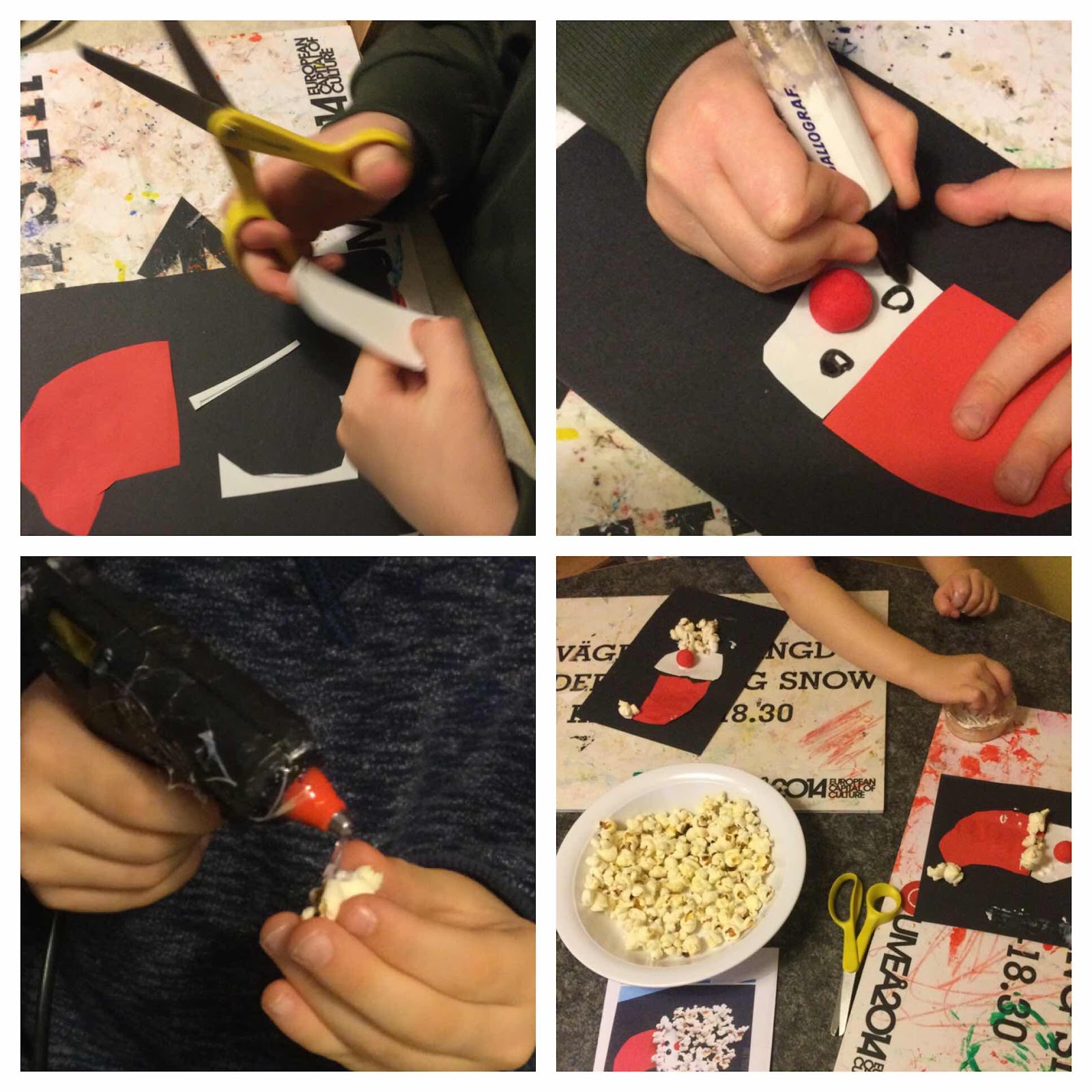 Man fick öva på att jobba efter bl a instruktioner, klippa och limma. En del barn limmade med limpistol andra med vanligt lim.